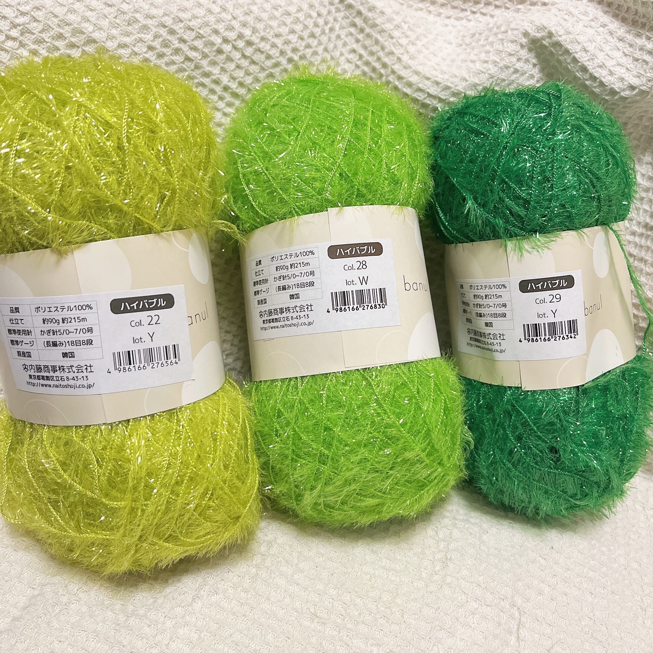 韓国製のキラキラファンシーヤーン。