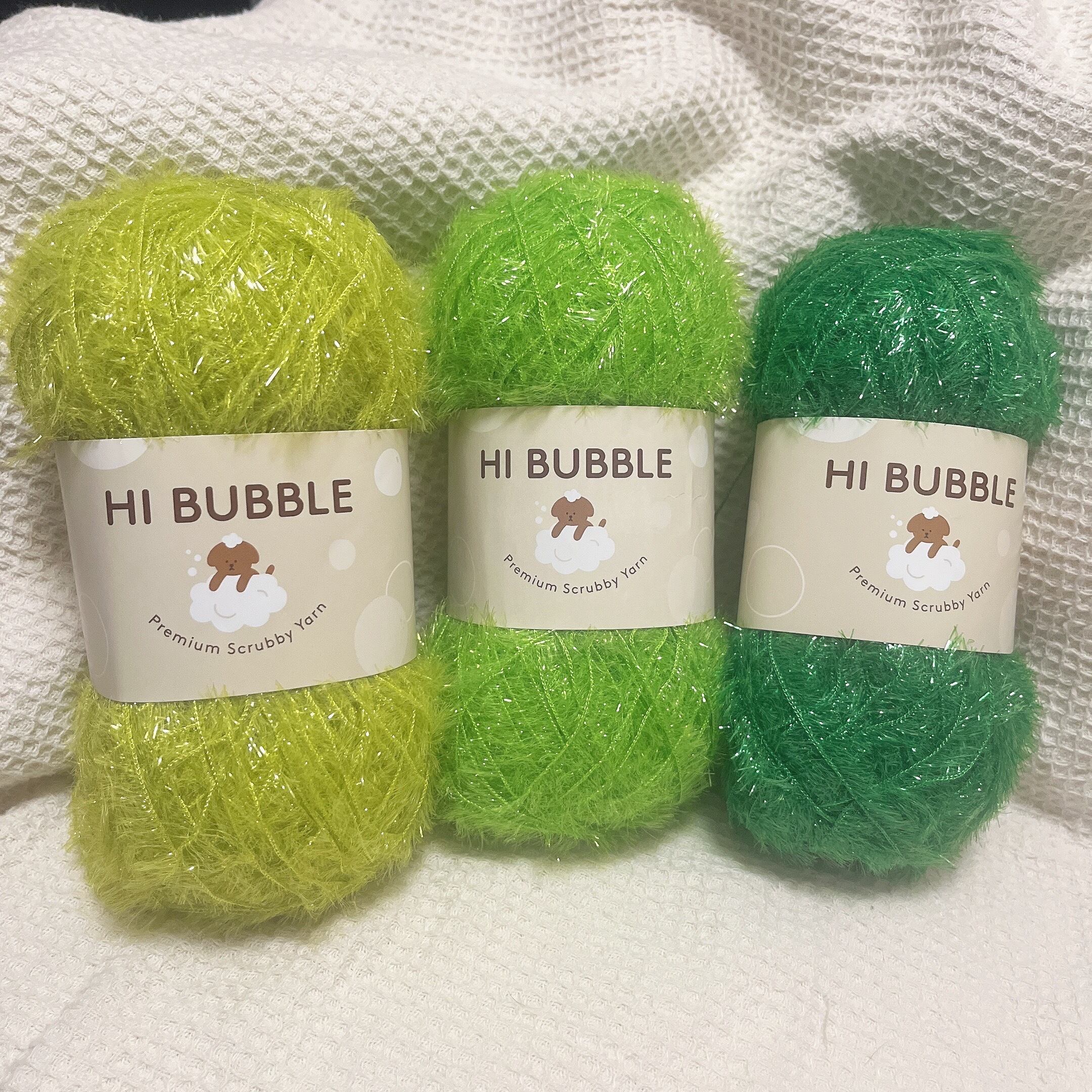 今韓国で人気爆発中の"エコな"たわし【スセミ】が編める毛糸です。ごく少量の洗剤できめ細かくて豊かな泡が立つことが特長です。毛羽部分も柔らかく、優しく手になじみます。